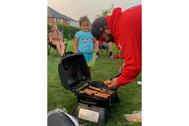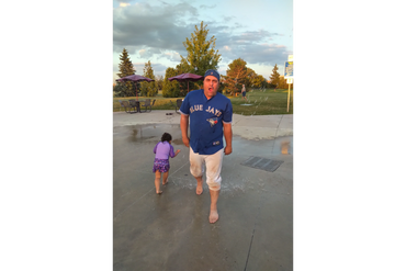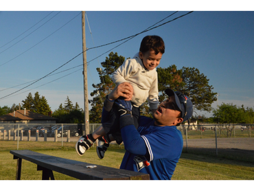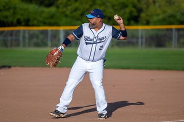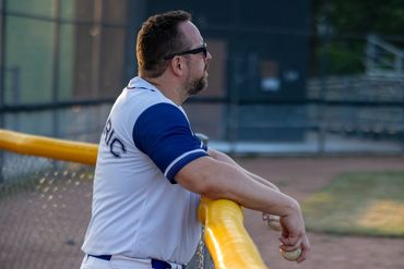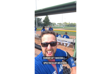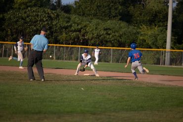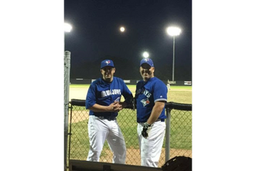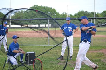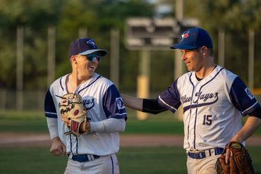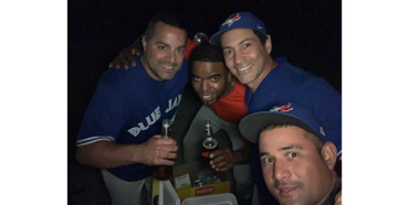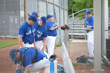 #14 Patrick Buscar, #16, Justin Loncaric (literally closing a deal walking to the field), #17 Dave Wolfendale, #19 Geoff Loewen, #22 John McNeil, #77 Matt Carmichael, #28 Eric Medeiros (Photographer)